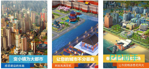 这款城市建造模拟类的游戏具备特殊俯视角,利用俯视角浏览城市景色会带来心旷神怡的感觉,游戏会进行昼夜、四季的交替显得很真实,徒手打造大型都市带来的满足感也无可挑剔,现代化大都市的环境呈现也具备极高辨识度,充满生机的城市景象让城市经营爱好者着迷,作为市长你能让自己的城市长足发展吗。