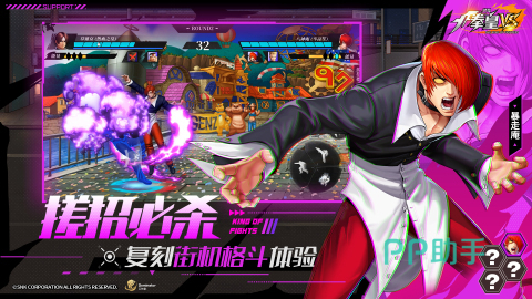 《代号:拳皇VS》作为一款备受期待的正版授权格斗手游,其核心亮点在于高度还原经典街机体验。游戏完整收录《拳皇》系列标志性角色,包括特瑞、莉安娜等原作人气人物,所有角色建模、语音配音、必杀技动画均严格参照原著设定,确保老玩家能瞬间唤起情怀记忆,新玩家亦可沉浸于正统格斗魅力之中。