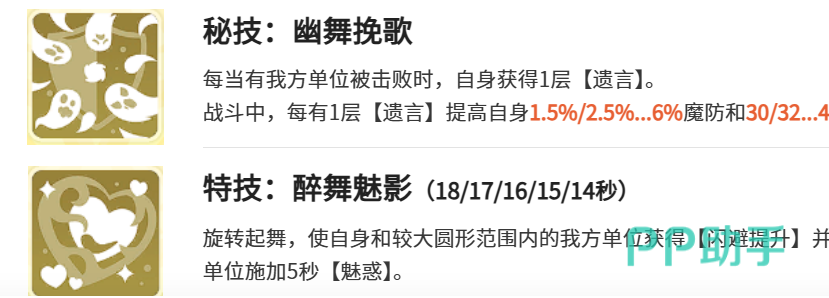 特技【幽舞挽歌】赋予团队逆境作战能力:每当一名我方单位阵亡,莎乐美获得1层“遗言”,每层提升6%魔法抗性与40点闪避值;该技能冷却时间14秒,使她在残局中防御强度随战损递增。秘密技能【醉舞魅影】则强化全局控场维度:释放后大幅提升全队闪避覆盖率,同时具备强制位移与节奏打断能力,是应对高爆发阵容的战术支点。此外,其普攻衍生效果【一圈垫球】可造成最高80%最大生命值的范围魔法伤害,并附带感电效果;在护盾存在期间,角色还将获得50%治疗效果加成,进一步强化持续作战续航能力。