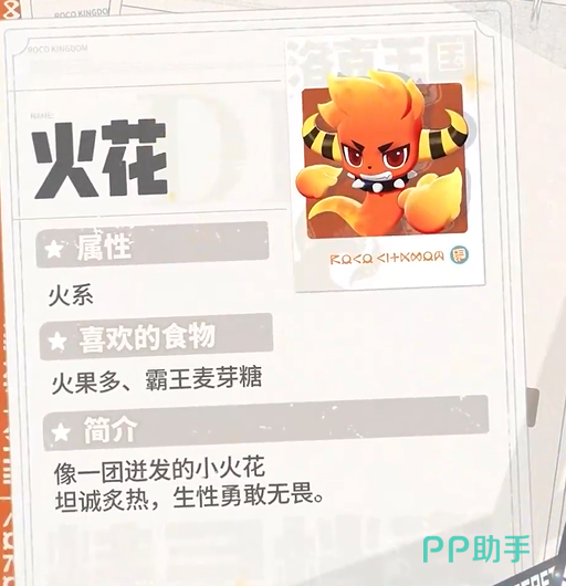 火花,名字就着火焰的气息。作为火系精灵,火花的特性让它的火系技能威力不断增强。每次使用火系技能后,它的火焰攻击力就会更强,火花简直是火系攻击的代表。它的技能“火苗”让火花无需消耗能量便能恢复能量并打出强力的火系伤害,而“火焰冲锋”更是将火焰力量发挥得淋漓尽致,直接冲向敌人,形成致命的火属性攻击。如果你喜欢强烈的攻击型精灵,火花绝对是你不可错过的选择。