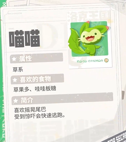 喵喵,这个萌态十足的草系精灵,绝对是你战斗队伍中的一员猛将。它的特性非常给力,使用草系技能时能够恢复生命值。这意味着,在你施放草系技能时,喵喵不仅可以伤敌,还能自己回血,简直是个非常耐打的小可爱。它的技能也相当丰富,像“抓挠”可以造成物理伤害并为自己充能,另外“荆棘爪”也能打出强力的草系物理伤害。别忘了,它还有“休息回复能”这种技能,可以用来在关键时刻回血。可以说,喵喵既能输出又能自保,绝对是草系精灵中的一股清流。