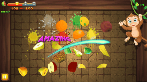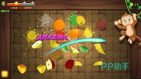 下面将开启疯狂的切水果过程,如果是想要获得高分的话,大家必须要快速的联系。在游戏里面,所出现的水果种类非常的丰富,包括西瓜和香蕉等。这些水果在被切开的时候会出现果汁,游戏的设计是比较高级的,毕竟所出现的果汁,和现实生活中的果汁是一模一样的。每一关结束后,都会帮助大家来统计这一关所获得的分数。