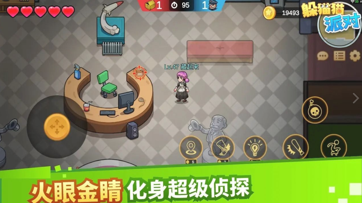 这款手机游戏以其极其细腻的游戏视觉效果著称,它精心塑造了各式各样的角色与场景,处处彰显了开发者的匠心独运。在游戏中,玩家能够挑选各式各样的道具,这些工具将助力玩家们在躲猫猫游戏中更加游刃有余。此外,游戏还融入了轻松的社交元素,让玩家有机会结识来自五湖四海的朋友。不仅如此,大家还可以随心所欲地组建队伍,共同享受躲猫猫带来的无限欢乐。