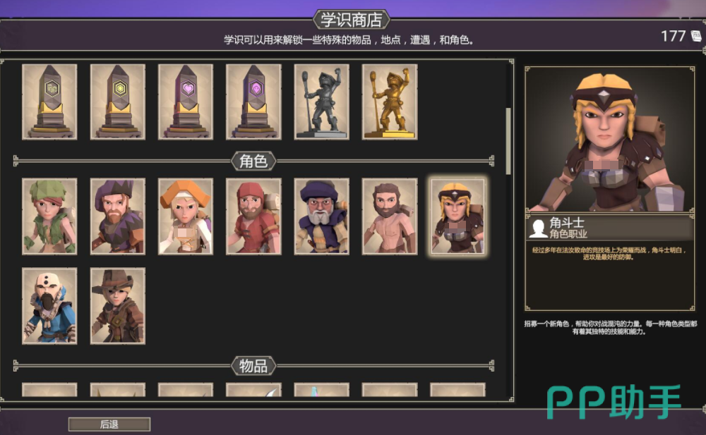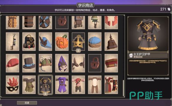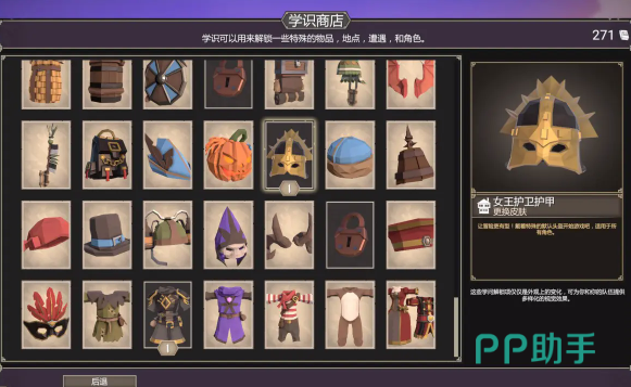 学识商店是游戏里比较核心的一个功能,解锁之后才能获取一些特殊的道具,并且在这里获取建筑物资以及一些特定的职业角色,这样可以让玩家有更强的实力,也能提升整个队伍的战斗能力,首先特殊的道具包括剃刀或者是中世纪骑士的皮肤,还有一些护甲,这些都可以给角色带来额外的加成,另外薛是商店还可以解锁像草药师这样的治疗类型职业,也可以解锁夜市这样的建筑,夜市最主要的作用就是可以刷新一些比较优质的装备。