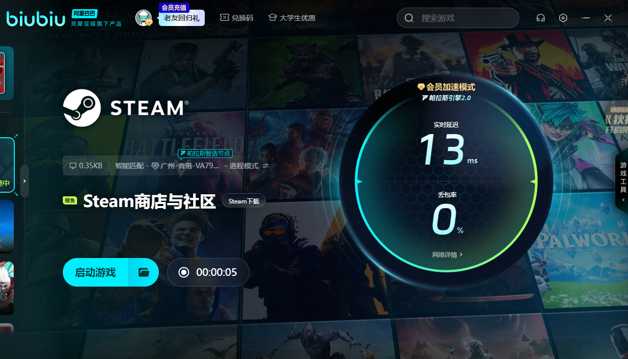 nba2k13目前在steam里上架,如果平台太卡的话,可能无法加载新的游戏。所以必须用上biubiu,提速过后就能稳定加载新的篮球比赛画面。新用户的话可领取3小时的免费加速,然后新老用户输入【biubiu不卡顿】,就能额外获得三天免费加速。如果运球时太卡,就很容易被别人抢走你手中的球。用上加速器后,才能流畅自如地控制好篮球,避免从手中溜走。