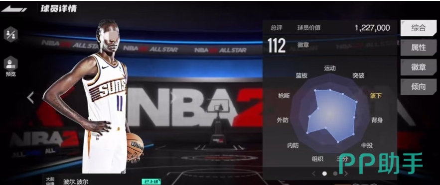 波尔波尔在游戏中一般是队伍当中大前锋或中锋的角色,他的身体模板和属性都堪称一流,对于广大平民玩家而言,他无疑是一个极具吸引力的选择,波尔波尔在篮下的统治力无论是篮板、内线防守、三分球还是中投都不错,在身体模型方面,他身高221厘米,体重却只有100公斤,这样的身长比例让他在球场上显得格外修长,而他的臂展竟然达到了231厘米,这让他在进行篮板争夺和防守时占据了极大的优势。