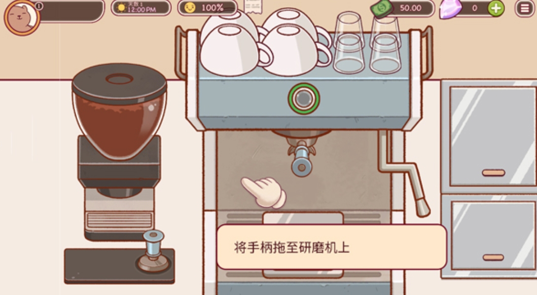 在游戏开始时,玩家需先接受适量的咖啡粉,游戏界面上会显示一条白色虚线,玩家必须在该虚线处停止,以确保所接取的咖啡粉数量合适。