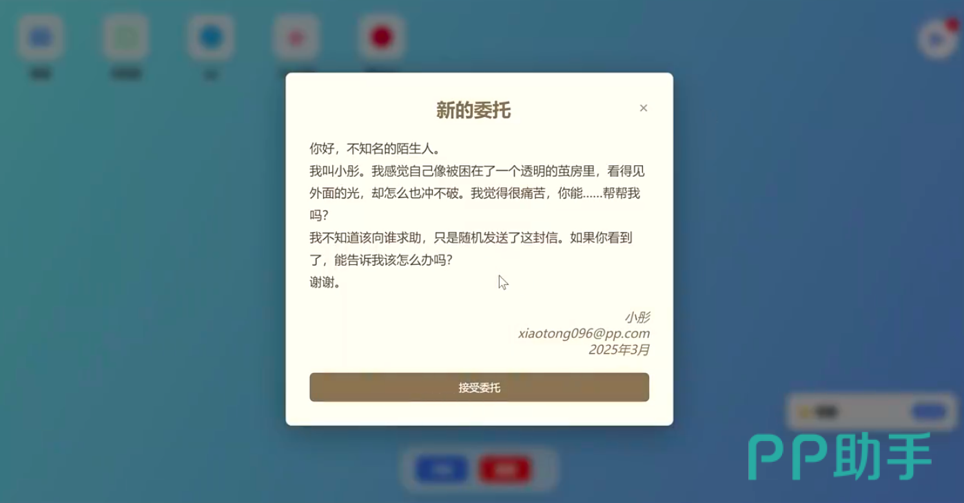 整体视觉风格克制内敛,所有操作均通过点击图标触发,无复杂指令输入。在探索过程中,玩家可逐步发现小彤的日常痕迹:待办清单里的加班备注、社交平台私信中未发送的求助草稿、电脑桌面上与流浪猫“汤圆”的合影……这些细节共同构建起具象可信的人物弧光。