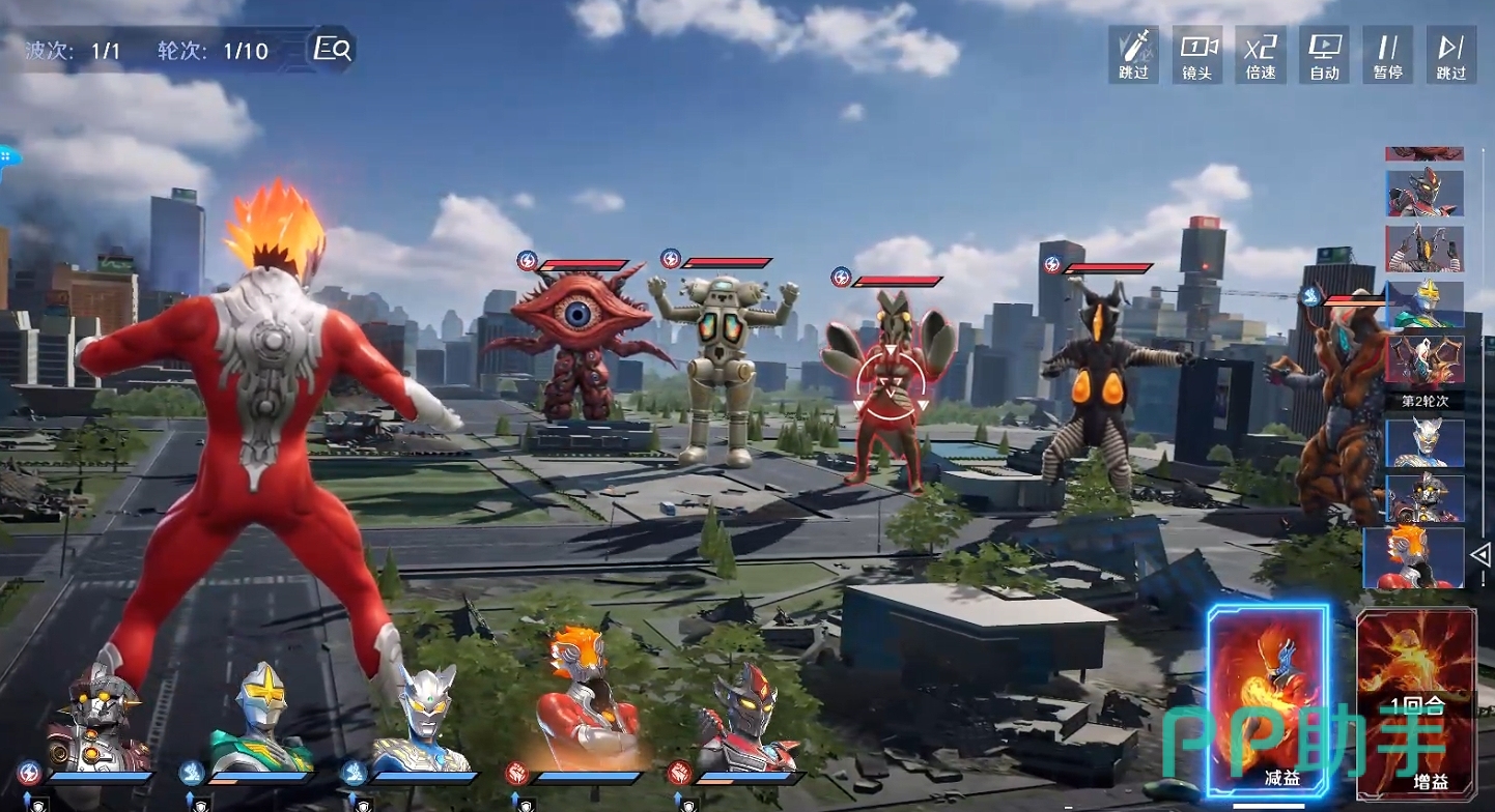 游戏采用高精度建模与实拍感动态演出相结合的方式,战斗过程严格复刻特摄剧节奏——从登场姿势、光线发射前摇、必杀技音效到粒子爆破反馈,均参照原作影像逻辑设计。赛罗奥特曼等高人气角色悉数登场,每位奥特曼释放技能时均配备独立动画序列,终极必杀技具备电影级镜头运镜与多层光效叠加,带来堪比新番剧集的视觉冲击力。