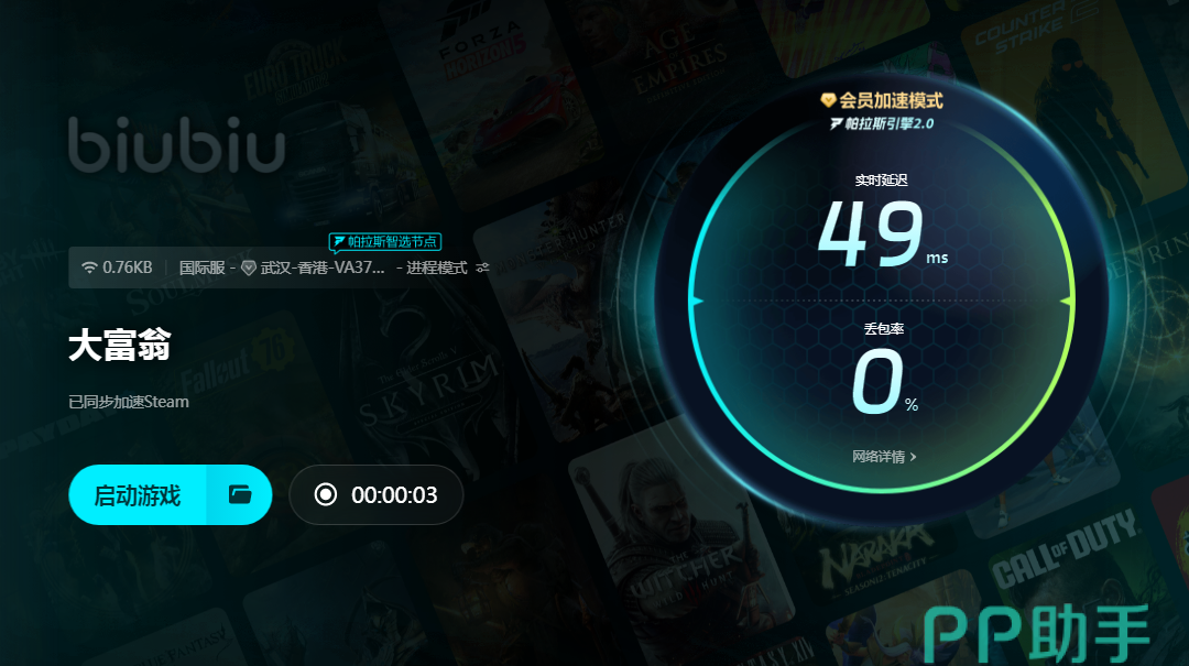 Biubiu现在使用的是帕拉斯引擎2.0技术,具有弱网对抗,专线连接等一系列技术方面的优势。它可以通过利用算法优势去匹配游戏独享高速专网,再加上多路和多倍发包,来保护加速流量,可以给玩家带来最低延迟。借助于大数据预判重传技术,针对本地网络容易出现波动的问题,实时补发数据包,这对于一些网络比较弱或者是波动比较大的用户极其有帮助。毫秒级的响应速度,能够有效避免卡顿和掉线,尤其适合WiFi连接或者是使用校园网等场景的用户,更是能够达到很神奇的效果。因为是在用biubiu打开游戏,所以很多玩家可能会担心安全性方面的问题,其实这些完全不用担心,biubiu有着内置加密方式,在这里运行游戏非常可靠,根本不用担心出现信息泄露的问题。