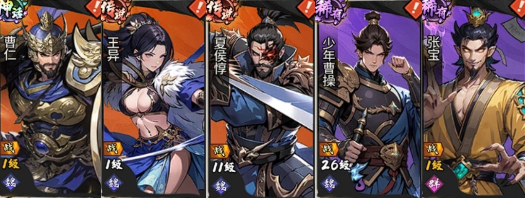 获取说明:少年曹操于主线初期自动赠送;其余武将在前中期章节中陆续获取,无需额外抽卡即可成型。