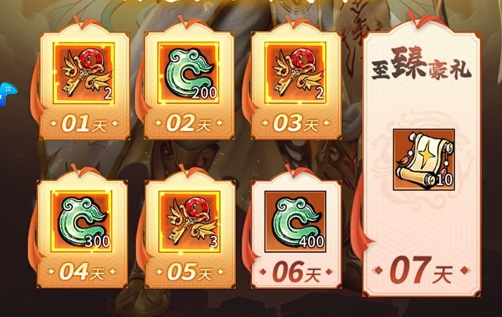 连续登录7天,依次领取深渊密钥×7、宝玉×900、点将令×10,全程零门槛,建议每日固定时间签到避免中断。