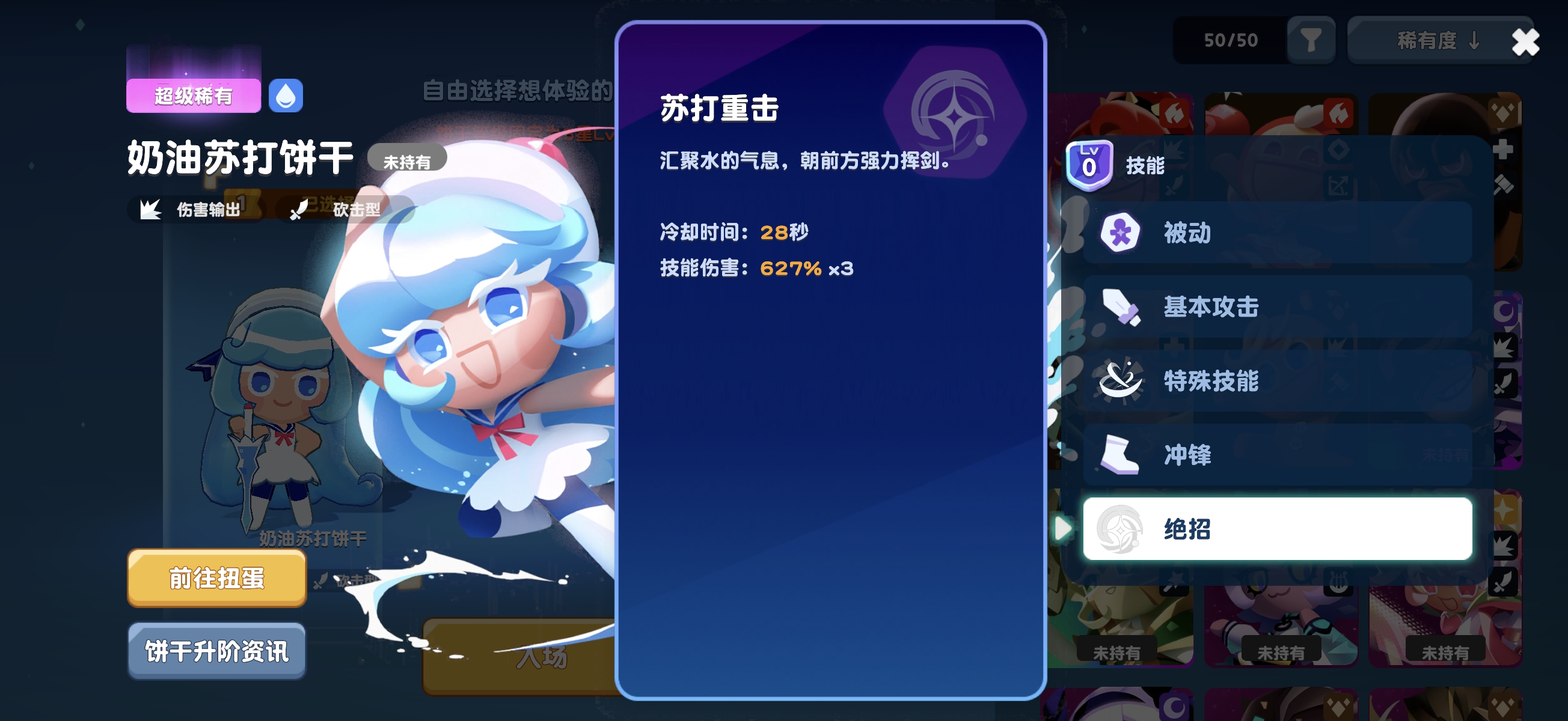 在《饼干人联盟》这款策略卡牌游戏中,每位饼干角色都具备独特的定位与战术价值,合理理解其机制是构建高胜率阵容的关键。本期内容将聚焦于水属性超级稀有品质角色——奶油苏打饼干,详解其战斗逻辑、技能协同与实战配队思路。