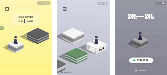 跳一跳这款低维单机游戏甚至都不用下载,直接在微信小程序里就可以即点即玩,特殊的点触操作考验玩家对机制的理解,方格形状的立体平台设定给人一种特殊的代入感,跳跃前进并参与获取积分的跳一跳玩法深入人心,比较简单的控制体系、轻松的气氛营造也是玩家的最爱,相信这款跳跃得分的经典单机游戏你也会喜欢。