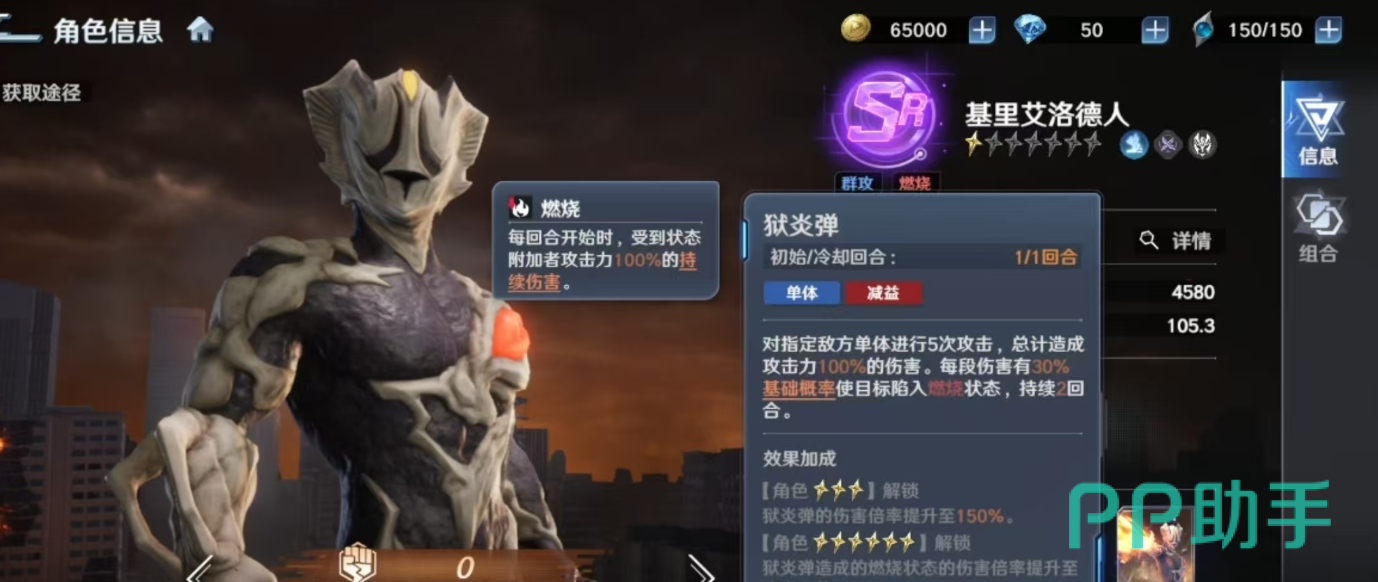 实战表现层面,基里艾洛德人具备突出的开荒适配性。其主动技能【狱炎弹】虽单次伤害数值中等,但具备五次独立结算的燃烧判定,大幅压缩异常触发的随机区间,构建出稳定的多线灼烧渗透路径。这种设计要求玩家在操作中兼顾爆发节奏与状态覆盖率管理,通过燃烧带来的百分比持续伤害,精准瓦解敌方前排承伤结构或关键辅助单位。
