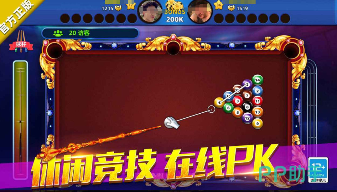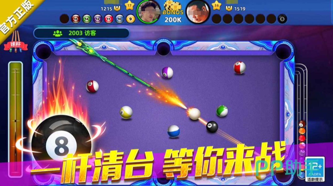 游戏提供了多样化的玩法模式,满足不同玩家的需求。经典八球PVP对战是核心玩法之一,双方轮流击球,若成功将目标球打入袋中,则可继续进攻,考验策略与精准度的结合。除此之外,还有8人联赛模式,系统会随机匹配八名玩家组成竞技小组,采用回合制方式进行角逐,规则设计更贴近线下赛事流程,增强竞技氛围。