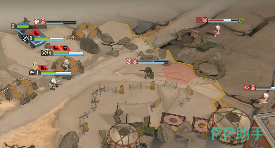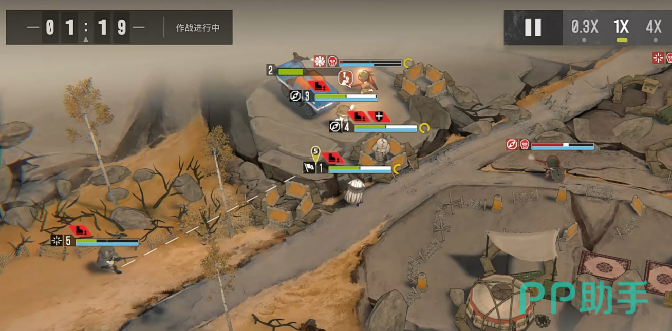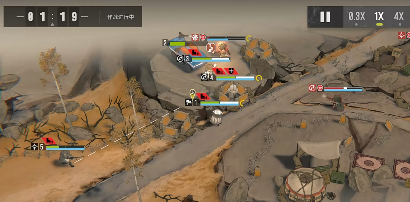 游戏的核心机制聚焦于实时战场指挥,操作方式简洁直观:通过单指框选单位、双指滑动调整视角即可完成调度。战斗地图采用六边形网格设计,地形因素在战术决策中扮演关键角色——山地可增强远程火力射程但限制重型单位行进速度,丛林具备隐蔽效果,而废墟中的墙体则可被摧毁以打通新路线。玩家需灵活运用工程兵建造防御工事或医疗补给点,并配合侦察兵标记潜伏目标,实现步兵与装甲单位之间的协同作战。