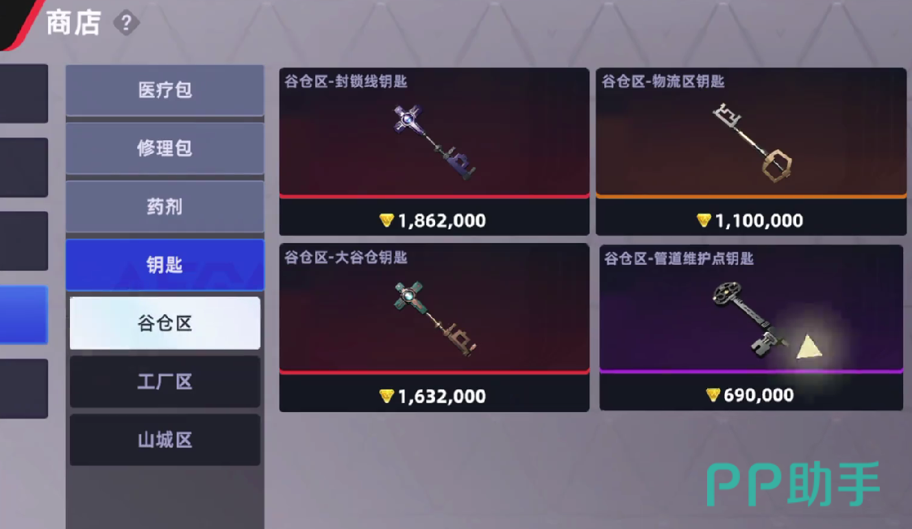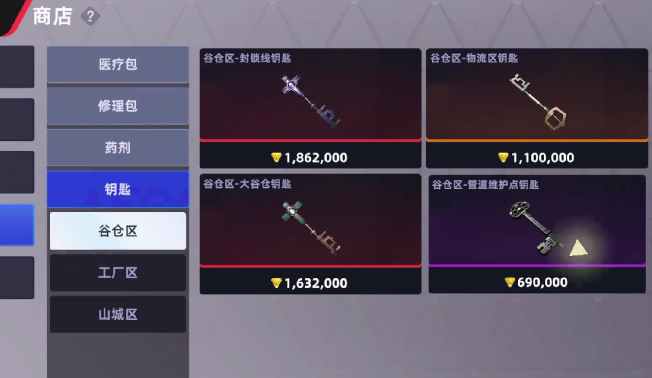 谷仓区共设5处独立密室,开启均需对应专用钥匙。其中,管道维护点钥匙耐久为3次使用次数;其余四类钥匙(小型仓库、封锁线、物流区、大谷仓)均为5次耐久。所有钥匙必须提前在商店购置,并装入钥匙链栏位,否则无法携带入场——这是常被忽略的关键前置条件。