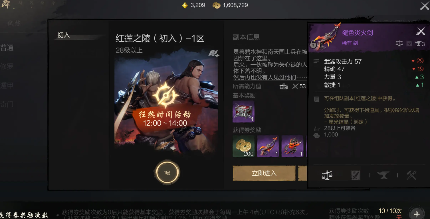 第二个玩法内容是副本挑战,玩家只需要将自己当前等级的副本进度全部拉满即可,每周有七个不同类型的boss和玩家展开车轮战,玩家挑战之后,不仅可以获得传说级别的武器装备,还能够获取大量的经验数值,但是副本有一定次数限制,而每天会恢复四次的挑战机会,玩家一定要进行全部清理。