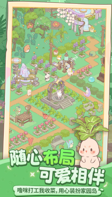本作采用纯手绘风格的2D卡通美术体系,线条柔和流畅,角色造型兼顾萌感与趣味性,整体视觉呈现具备较高辨识度。场景配色温暖清新,UI界面简洁直观,在长时间游玩过程中能有效降低视觉疲劳,强化沉浸式治愈氛围。