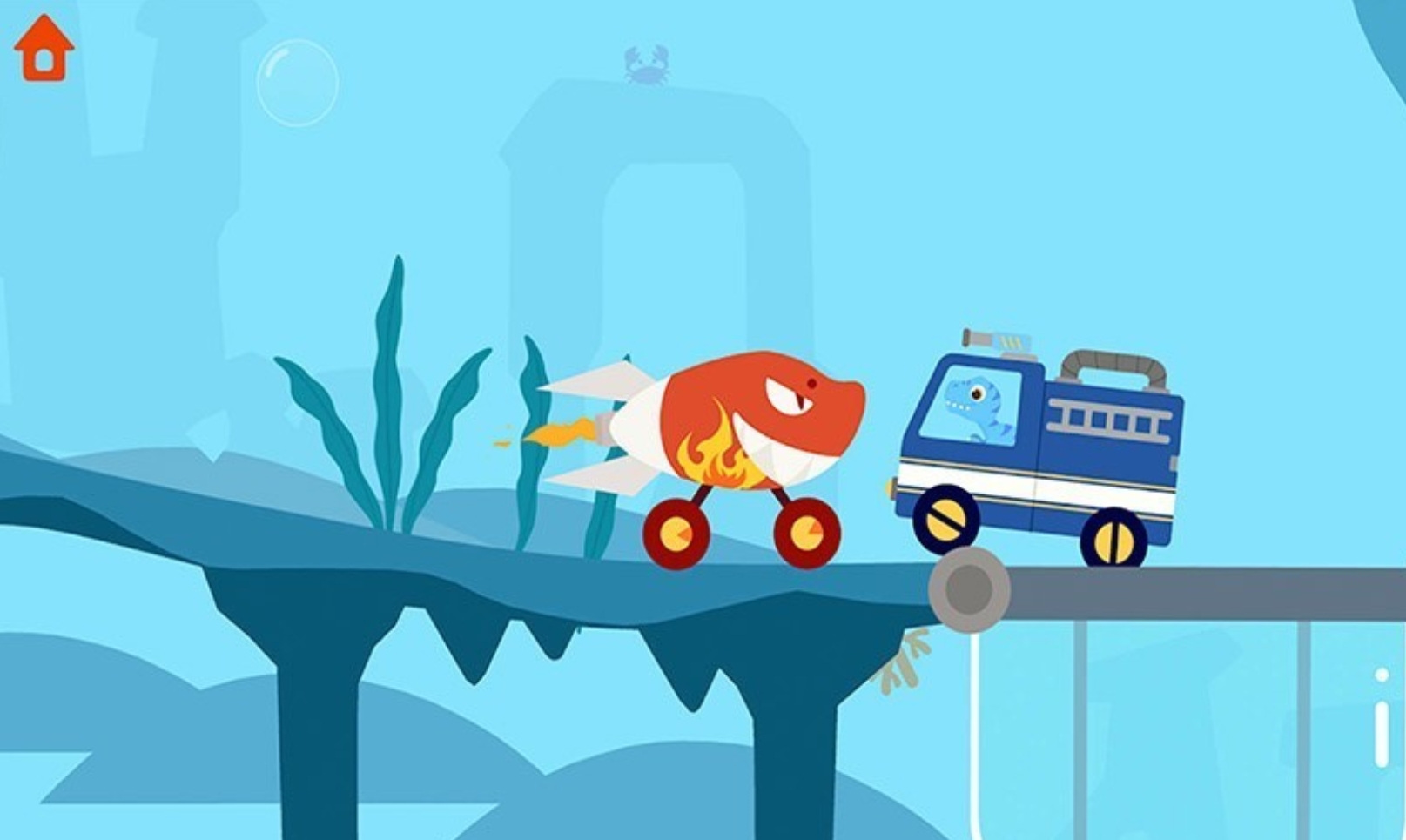 游戏有着十分鲜艳的卡通画面,而且每一处卡通场景都有着很不错的质感,在游玩时孩子会获得像是在看动画片一般的体验。它的玩法也很容易弄懂,只要让孩子开着各式各样的恐龙警车去完成对罪犯的追捕,就能顺利地完成关卡。但要注意追捕路上还有很多陷阱和罪犯的帮手,得小心地避开它们,才能令追捕之旅更为顺利。