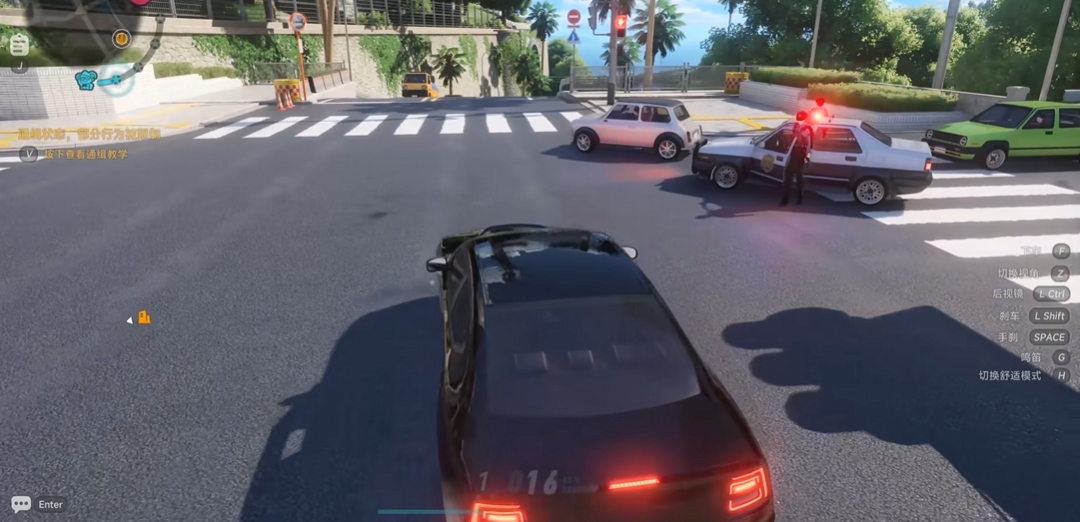 该模式与载具系统深度耦合。当玩家驾驶车辆在城市区域实施连续闯红灯、高速冲撞行人或主动撞击警用车辆等违规操作时,系统将启动通缉判定。通缉等级分为1至3星:1星为初始警告状态,此时若及时驶入隐蔽点位静止90秒,通缉将自动解除;2星起追捕强度显著提升,警力响应频率加快;抵达3星后进入强制逮捕阶段,无论采取何种规避手段,最终均会被押送至中央监狱。