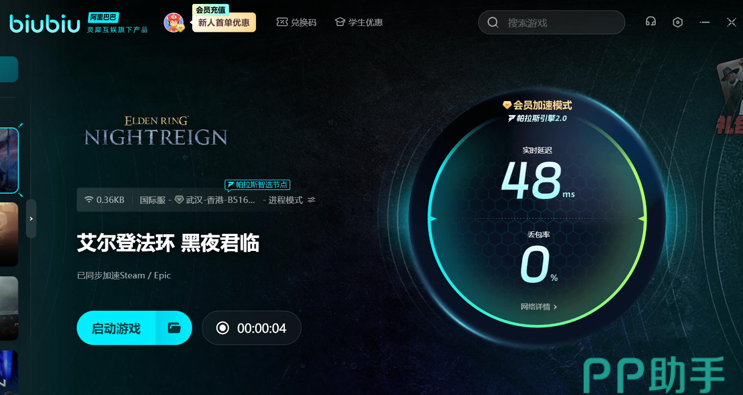 目前,biubiu加速器已支持多款热门游戏加速,新用户注册即可领取24小时免费加速时长。输入兑换码【biubiu不掉线】,还能额外获得3天加速权限,累计96小时的免费加速足以完成艾尔登法环黑夜君临的下载,并让大家好好的体验游戏。