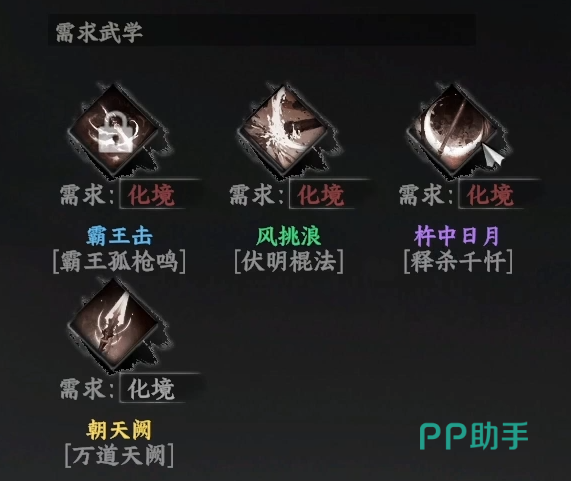“霸王击”则需要前往鸿月门,并通过完成门派发布的悬赏任务来换取。至于“杵中日月”与“朝天阙”,则需前往大雪山,与大长老对话并完成相应条件后方可兑换获得。
