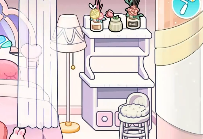 第五步:细节延展优化。若希望进一步强化主题氛围,可在地面铺设毛绒质感粉色地毯,墙面悬挂卡通化公主插画或手绘风海报,亦可添加少量蝴蝶结挂饰、云朵造型小灯等点缀物。所有延伸装饰均基于玩家个人偏好自由组合,不改变主体配色逻辑(主色为粉+白)与风格基调(可爱、柔和、梦幻)。