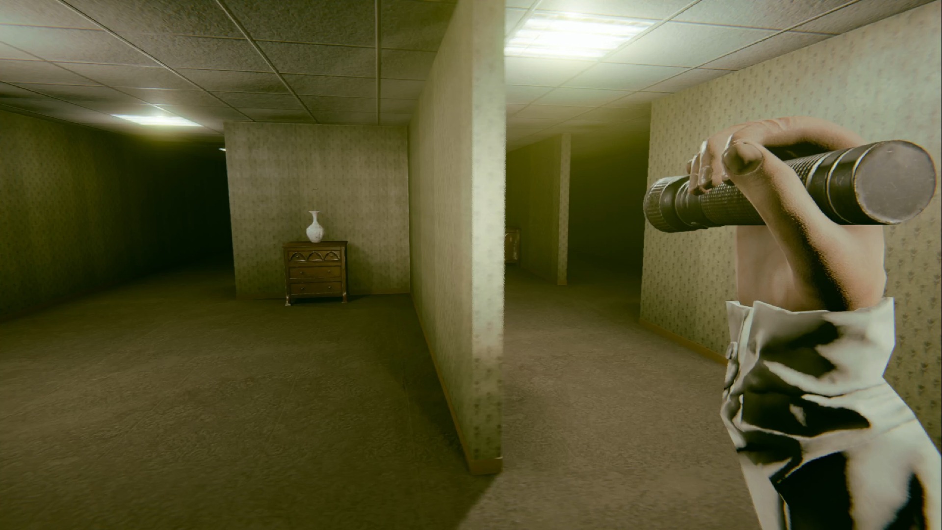 《误入后室》是一款充满惊悚氛围和解谜元素的游戏。后室的布局设计让人迷失方向,玩家没有明确的目标,只有不断的走进下一个房间、解开一个个谜题、躲避突然出现的恐怖元素,生存下去的唯一希望就是保持冷静,找到通往自由的路。后室的布局千变万化,玩家必须通过不断的尝试和失败,找到正确的路径。