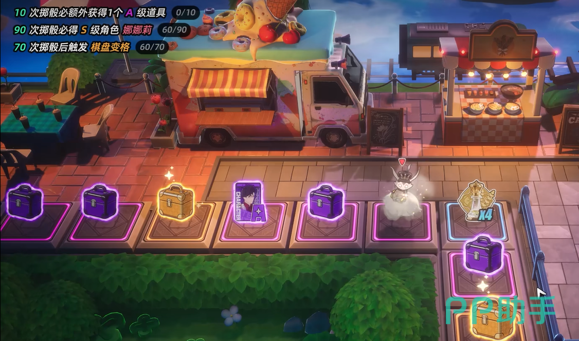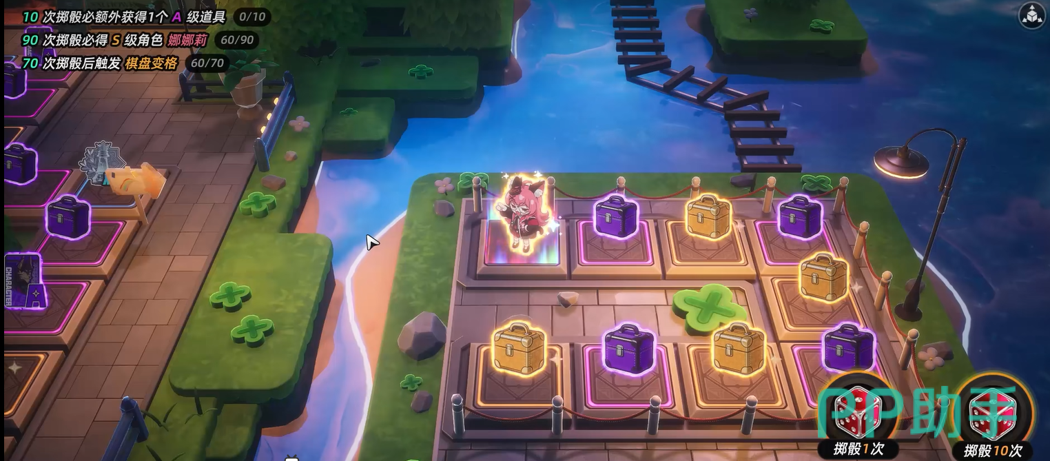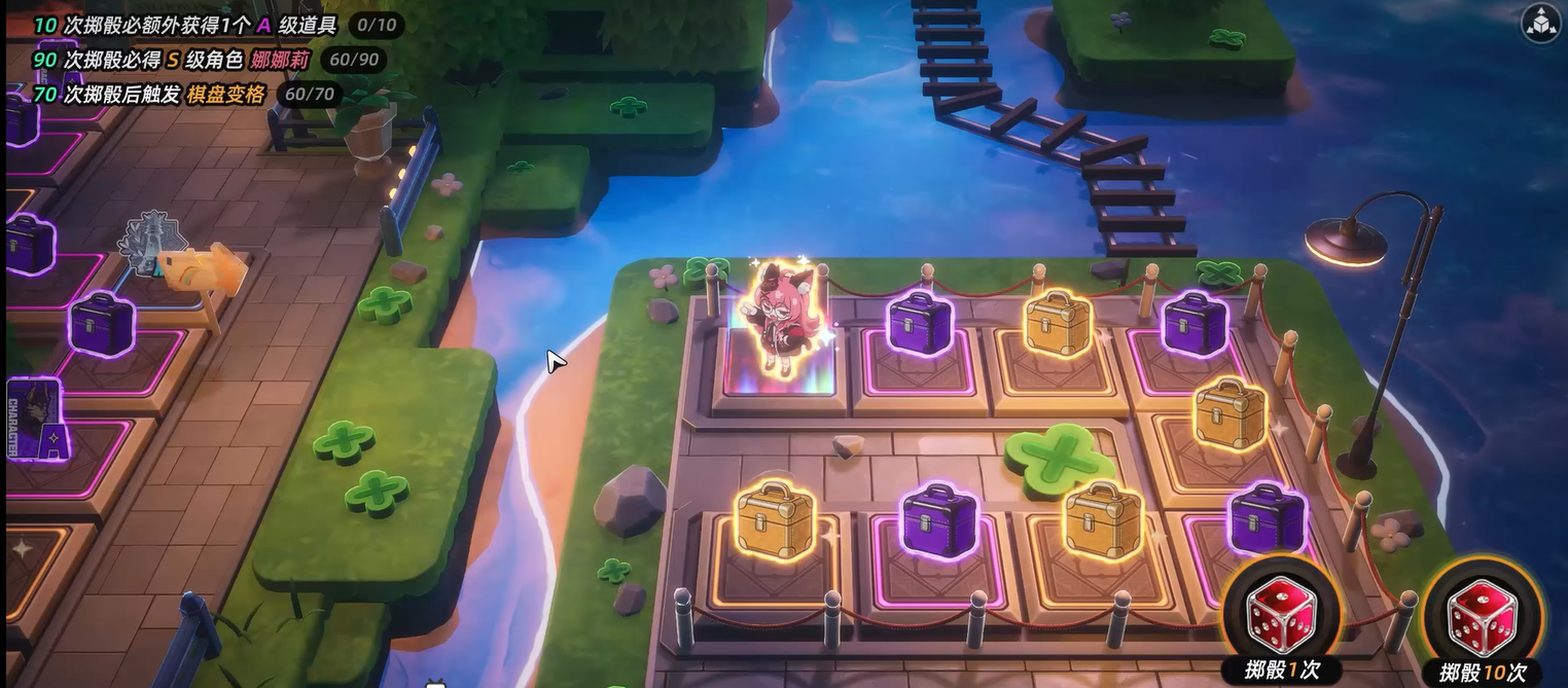 该玩法以六边形棋盘为载体,玩家通过掷骰决定行进步数,落点格子即对应当次奖励。棋盘格分为两类:一类为角色格,踩中后可直接领取当期UP限定角色,结果确定、无偏差;另一类为宝箱格,开启后随机获得S级角色、S级专属武器或通用培养材料,具体产出需开启后揭晓,具备一定探索感与悬念性。