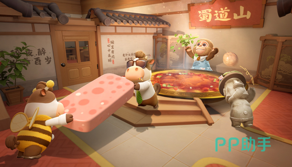 “踢炸弹”模式打破传统躲弹逻辑:玩家需在立体空间中利用位移预判、惯性滑铲与弹射反推完成高难度闪避,同时还原经典影视桥段动作,紧张感与喜剧张力并存。而在“火锅之王”场景中,鸡腿、香菜等食材会随机跃入邻座锅底,触发即时争夺战——抢食材、堵锅口、干扰对手,三秒内即可引爆全场笑声。