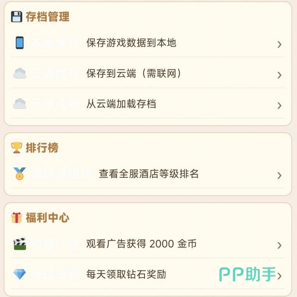 随着营收积累,玩家可投入资金对酒店进行阶段性升级,逐步解锁更高等级房型,同步推动酒店星级评定上升。盈利效率取决于服务链路的完整性——从前台接待、客房清洁到餐饮配套,每个环节都会影响顾客评分,而综合口碑正是决定长期客流与品牌价值的关键指标。