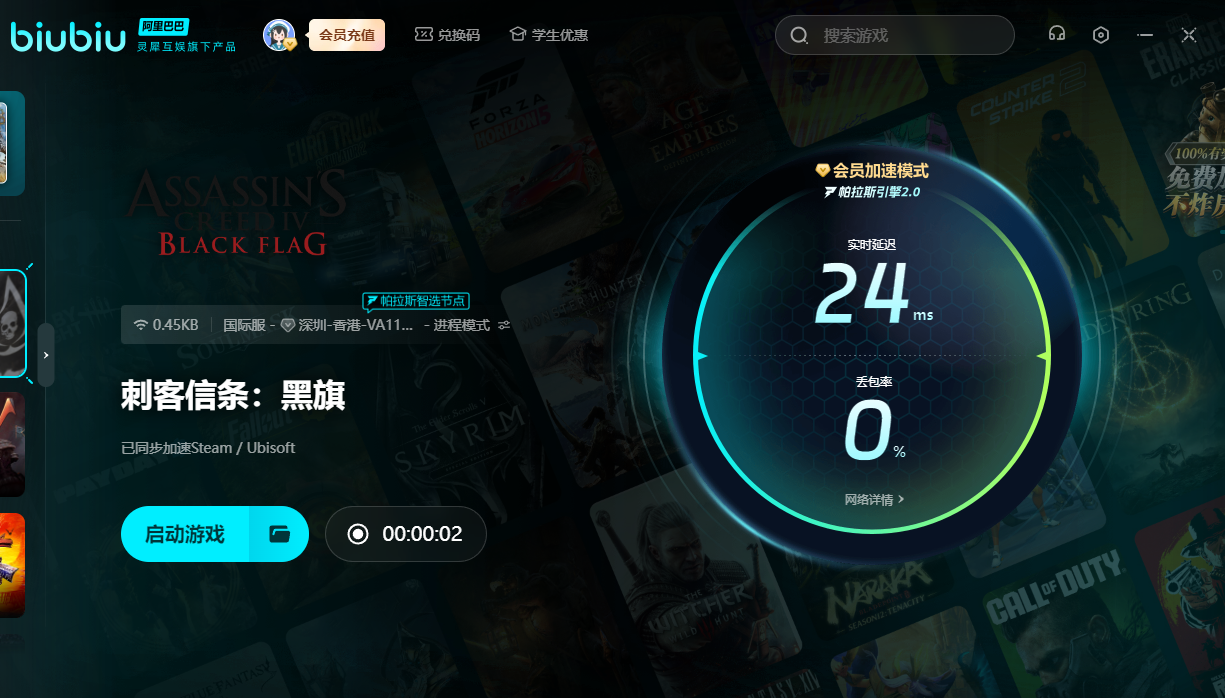 刺客信条黑旗作为一款几乎全球皆知名的冒险大作,如今暂时仍然没有上线国服。所以为了能够重塑一段传奇海盗之旅,我们还得用上biubiu,便可直接驾驶海盗船环游世界。对于新用户来说,可领取3小时的免费加速。要是新老用户输入【biubiu不卡顿】,即可额外领取三天免费加速。如果在执行刺杀行动时过卡的话,那可能还没动手就会被别人揪出来杀了。所以必须用上加速器,才能有备无患地潜行进去。