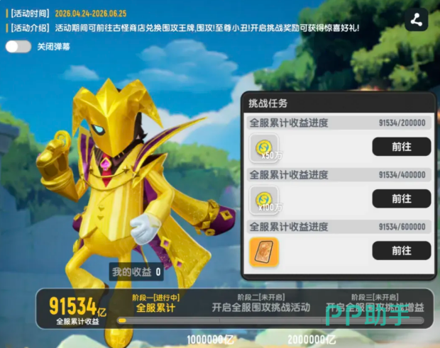 活动分为两个关键阶段:第一阶段为全服进度积累期,时间自4月24日起至6月25日止。在此期间,玩家参与“摸金派对”模式所获得的收益将实时计入服务器总进度。当全服累计收益达成预设阈值后,第二阶段——Boss挑战战——即刻激活。进度积累过程中,玩家可依据阶段性达成目标,领取肠宝币及核心凭证“围攻王牌”。该道具为进入Boss战的唯一入场资格,若未在活动期内自然获取,亦可通过古怪商店使用其他资源进行兑换。