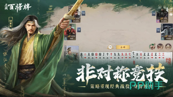 游戏采用纯正国风2D水墨美术风格,武将立绘由专业团队精细绘制,人物神态、服饰纹样、兵器细节均体现高度考据与艺术完成度。每位武将拥有鲜明视觉标识,辨识度极高。牌面设计支持双模式切换:经典扑克样式与原创国风样式可自由选择;出牌动作全程配备角色专属语音,强化沉浸式三国博弈氛围。