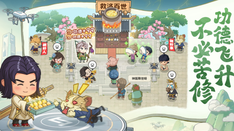 游戏创新引入“古今转译”设定:历史传说人物将以符合当代社会身份的新形象登场,如药王孙思邈化身社区诊所老中医,白泽化身为AI灵兽识别系统工程师。每位角色均携带专属现代技能,助力道馆高效运转。玩家需主动采集草药、矿石等基础资源,利用智能炼丹炉完成丹药合成,并借助香客参拜持续提升修为境界,加速飞升进程。