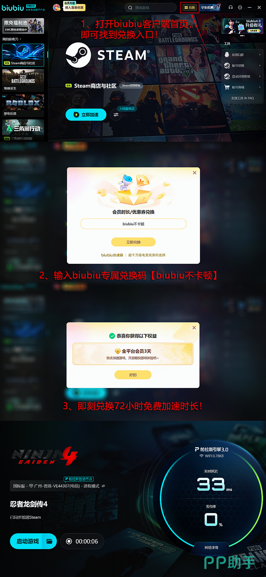 在外观定制方面,豪华版额外提供两套限定皮肤道具:“邪神剑”皮肤以及“神圣奇美拉”武器套装,可用于八云角色的形象替换,增强个性化视觉体验。若在实际游玩过程中出现画面延迟或操作卡顿现象,推荐使用biubiu加速器进行网络优化,新用户注册即可领取24小时免费加速时长,畅享无阻战斗快感;同时,输入兑换码【biubiu不卡顿】,新老玩家均可再获3天免费使用权限,有效缓解因网络波动导致的操作问题。