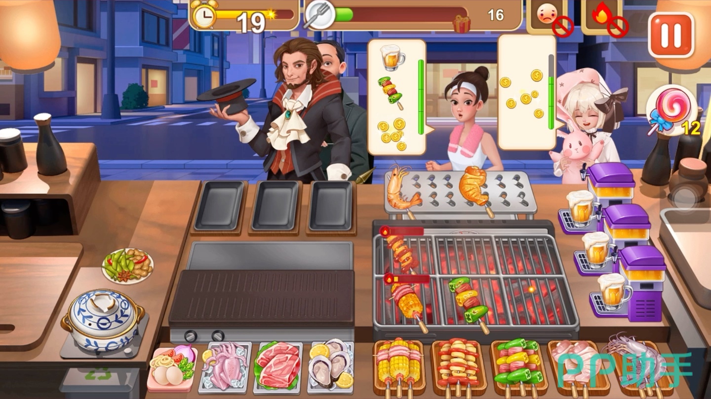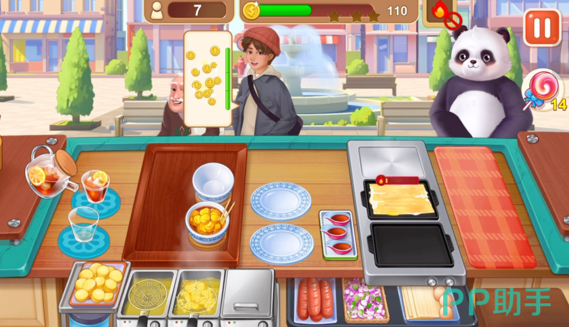 随着游戏进程的推进,难度也会越来越大,小伙伴们需要同时操作的食物也会越来越多,因此小编在这里也为大家提供一些小小的技巧,比如说在游戏开局之前会有一点点的准备时间,趁这个时间小伙伴们可以先将可以长期放置的食物先烹饪好,如果有客人需要的话,直接将菜品交给他即可。或者多准备一些棒棒糖,如果摊位前的客人感到不耐烦,不妨使用一个棒棒糖来提升大家等待的时间。