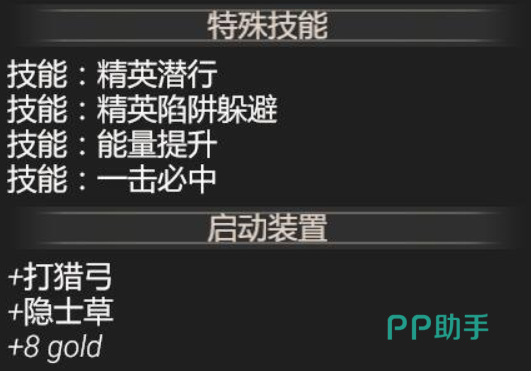 猎人的四大天赋技能共同构建了其核心玩法体系。首先是“高级潜行”,大幅提升隐匿成功率,让猎人能够在不触发战斗的情况下绕过部分敌人,特别适合用于规避高风险区域。其次是“高级陷阱躲避”,虽然实战应用频率较低,但在特定迷宫或机关密集区域仍具备战术价值,可为队伍探路提供支持。