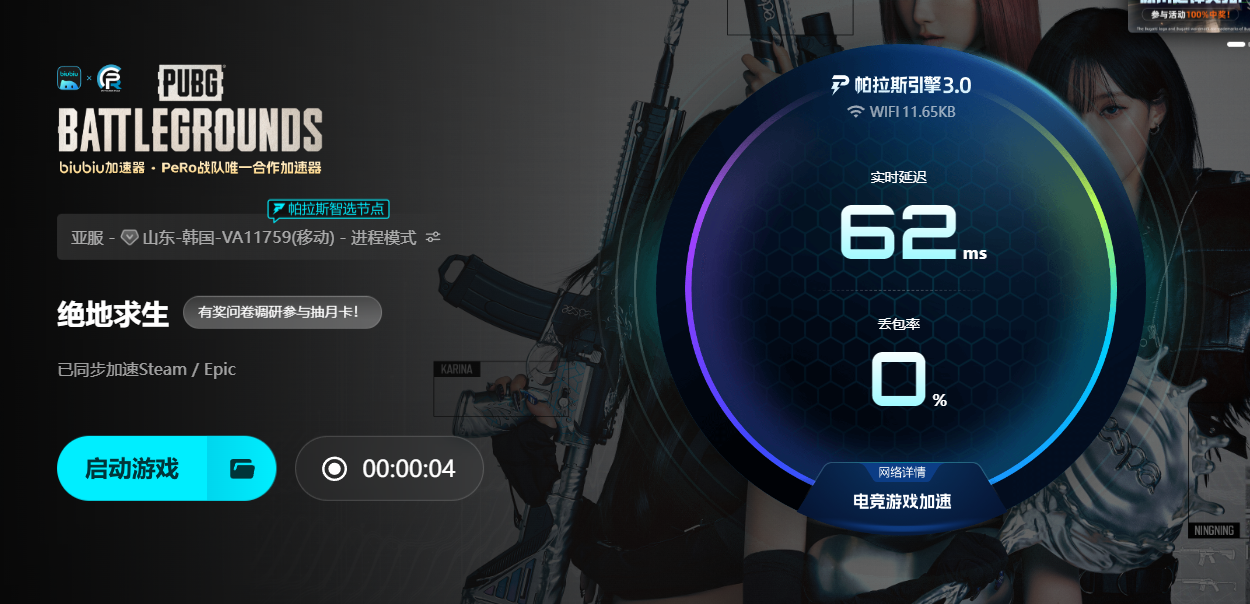 很多玩家觉得黑屏是电脑配置跟不上,其实再目前普遍设备提升的情况下网络才是最主要的因素。《PUBG》在多人混战、快速转移或加载远处场景时,需要高频同步玩家位置、弹道轨迹、载具状态等数据,尤其是在决赛圈多队交火时,数据传输的微小延迟都可能引发画面中断。可以尝试一下biubiu加速器,新用户注册能获得24小时免费时长;而且不论是新玩家还是老用户都可以输入口令【biubiu不卡顿】再兑换72小时。