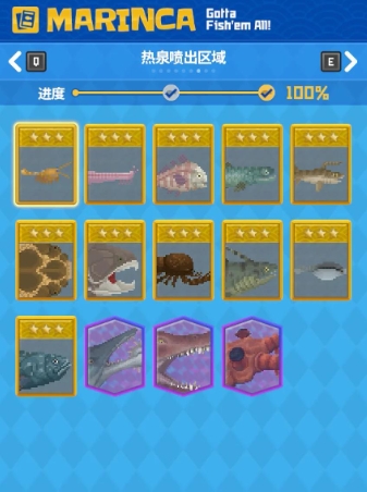 海马区域的收集进度为100%,这个区域的生物相对温和,适合新手玩家进行初步的探索和收集。在这里,玩家可以找到各种海洋植物和小型生物,同时也是获取海马卡片的好地方。海马区域的探索难度较低,但玩家仍然需要保持警惕,以免被意外的生物攻击。