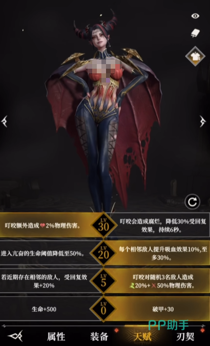 夜魅的核心定位是物理群伤输出型射手,同时依靠技能吸血实现自保,因此天赋选择必须优先强化这两个方向。加点策略需分阶段执行:前期以基础属性为主,中期根据队伍构成决定偏向输出还是生存,后期则要针对敌方阵容特性做出微调。初始解锁的天赋无需犹豫,直接选择破甲与生命值加成,既能提升前期清怪效率,也能增强抗压能力,为后续发展打好基础。