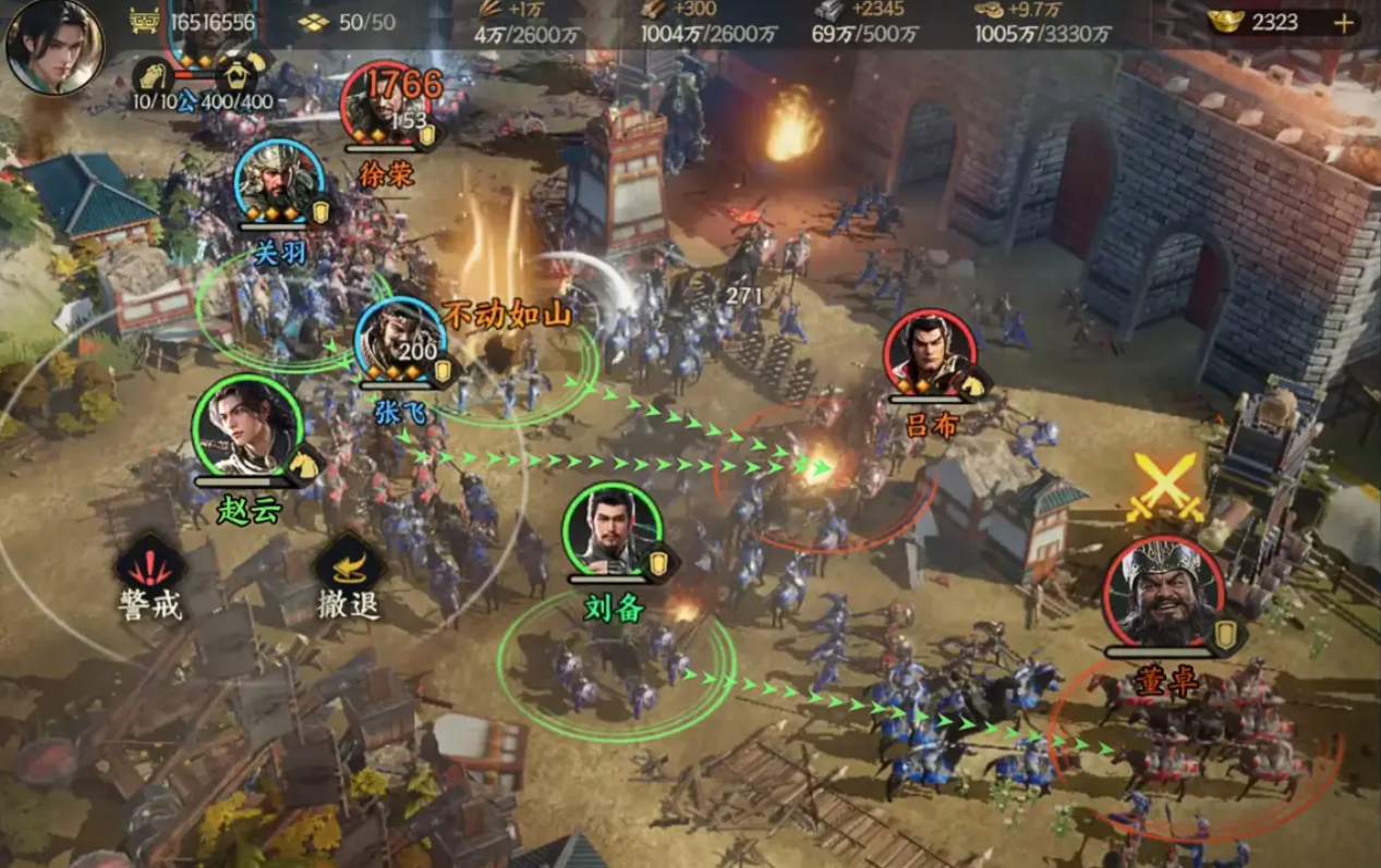 该组合以高频率单体打击为核心优势。三位武将均具备针对单一目标打出高额伤害的能力,且普通攻击有一定概率触发追击效果,实现额外出手。其中马云禄在激活兵书技能后,还能追加一次普攻机会;赵云的被动可提升骑兵部队的移动速度;马超则能依据自身与敌方的速度差值,进一步增强普攻输出;而马云禄的被动还能强化全队武将的普攻强度,非常适合用于攻城略地或小规模遭遇战。