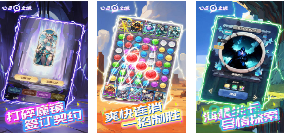 心灵之境是款融合了消除、魔幻背景和卡牌元素的作品,你将进入神奇的心之国参与未知的冒险,与魔镜互动签订各种契约可执行各种任务,通过消除的方式获取卡牌的也较为良心,关卡多样化也加入了自动探索的设定,光怪陆离的魔幻背景加持让这款消除作品更有神秘感,利用各种辅助道具一招致胜通关的过程超爽快。