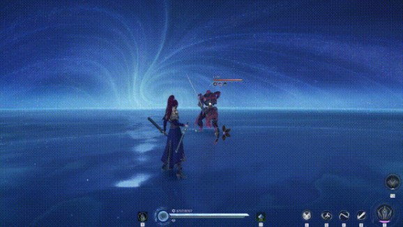 花木兰的基础普攻具备五段式连击结构,每次命中均可积攒怒气值,为后续形态切换与技能释放提供能量支撑。短按普攻可快速衔接多段斩击,长按则触发“旋风突袭”效果——对范围内敌人造成击飞并附加短暂控制。其轻剑形态下的一技能“空裂斩”分为两段:第一段为位移突进,第二段为滞空斩击,两段可无缝衔接,形成“进场—压制—标记”三位一体的压制链。该技能组合不依赖复杂预判,却能在团战前排切入、单挑消耗、视野探查等场景中持续施加压力。