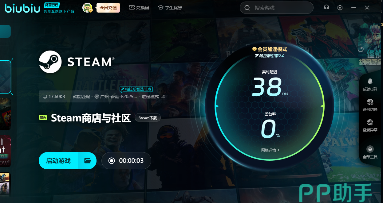 对于监狱模拟器这类在steam上线的作品,biubiu也是绝佳的选择。因为它能对steam进行免费的加速,在打开商店和社交页面的过程中不会出现任何障碍。如果是之前从来没有用过biubiu的小伙伴们,可以用新用户注册领取免费的3小时加速时间,在正式购买之前先进行一段时间的体验,帮助自己更好的了解它的优质效果。觉得没体验够还想尝试,也能通过【biubiu不卡顿】兑换码领取3天加速时长。