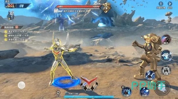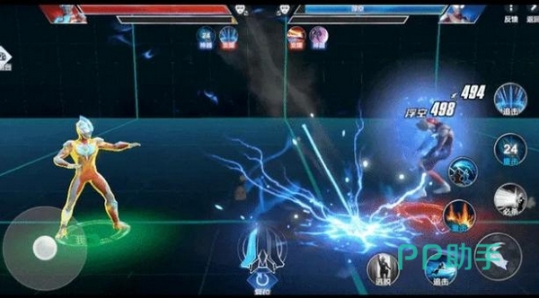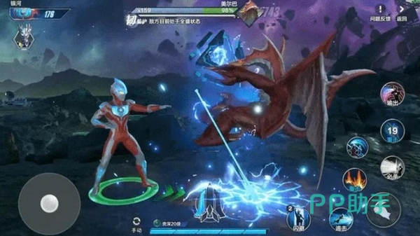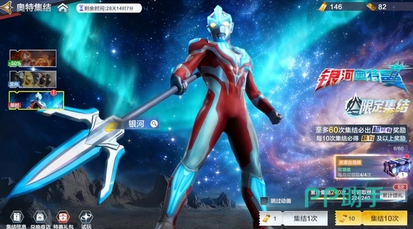 实战中,装备者可主动释放技能,召唤银河火花枪自空中高速坠击至目标区域,造成大范围伤害及浮空效果。落点可通过方向键或虚拟摇杆微调,操作响应要求较高。当由银河奥特曼本体使用时,将额外触发一次能量强化状态,提升后续技能释放效率。
