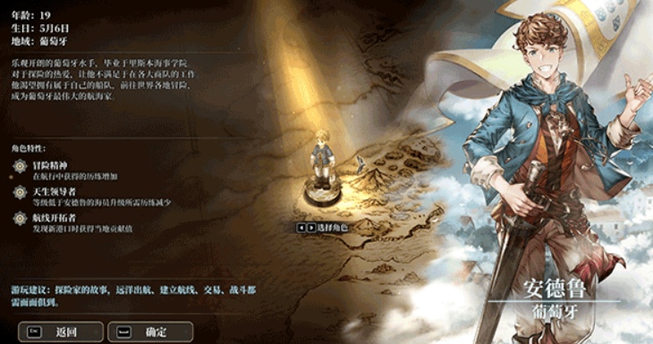 安德鲁出身葡萄牙普通家庭,是一位理想主义色彩浓厚的航海者。他通过刻苦学习考入正规海事学院,却受限于当时贵族垄断航海资源的社会结构,长期从事船舶维护与基础勤务工作。在日常清洁船长室与测绘室的过程中,他持续吸收航海图绘制、星象定位等关键知识。随着大航海时代浪潮兴起,他毅然脱离商队体系,组建自主探险队伍,目标直指未知海域与未标注港口。该角色面向探索驱动型玩家设计:航行途中持续积累经验,首次抵达新港口时可即时获得对应地区的声望贡献值。