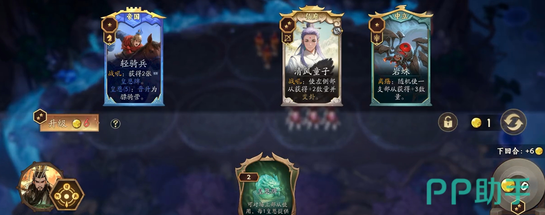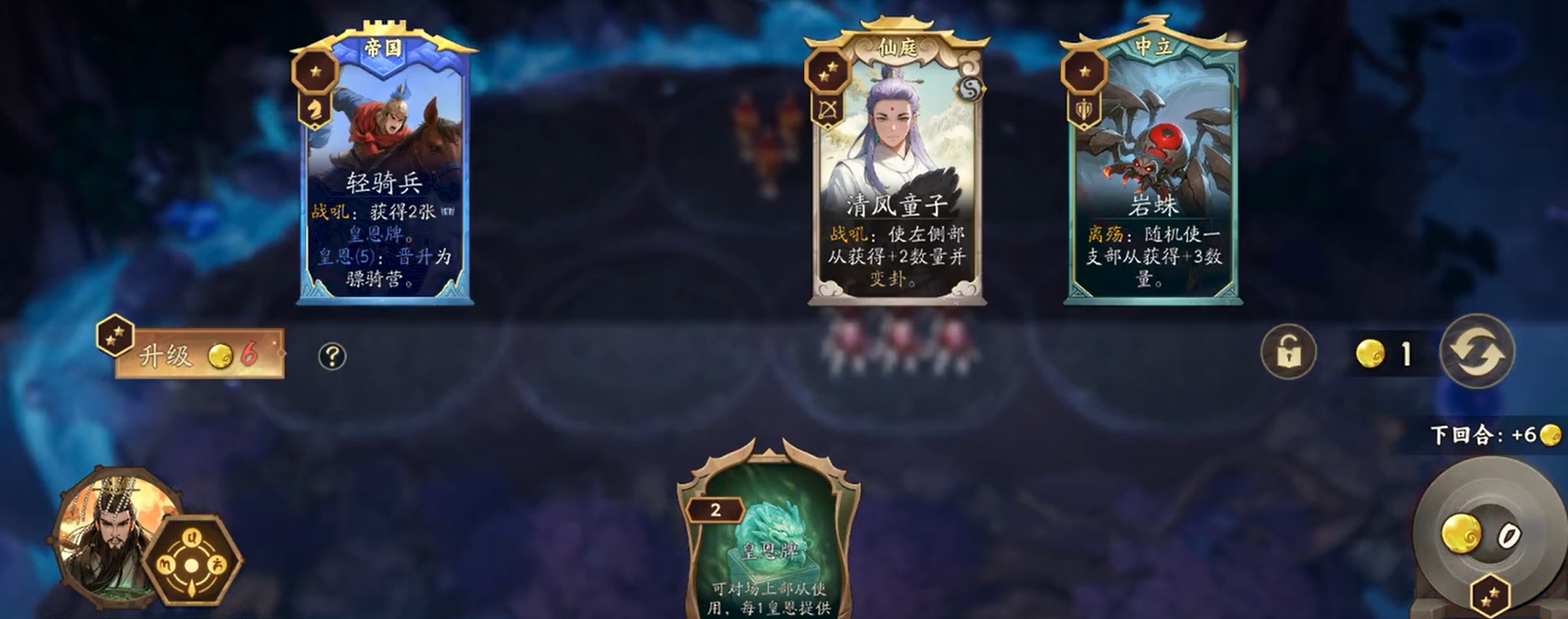 灵石是玩家在对局中进行资源调度的基础单位,其核心用途包括三类:购入部从、刷新天书、升级天书。所有部从的初始购买价格统一为3灵石;出售任意星级部从均可返还1灵石,该数值不随部从星级变化而浮动。每次刷新天书固定消耗1灵石,构成最基础的操作成本。每回合开始时,系统会按回合数发放基础灵石——前期较少,随回合推进逐步递增,但上限恒定为10灵石。这一设计引导玩家在中后期拥有更强的阵容调整能力。